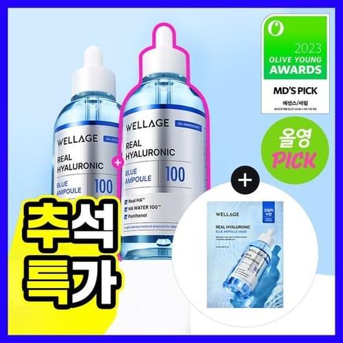 保濕安瓶 Wellage Real Hyaluronic Blue 100 - 75 ml X 2 (+mask)